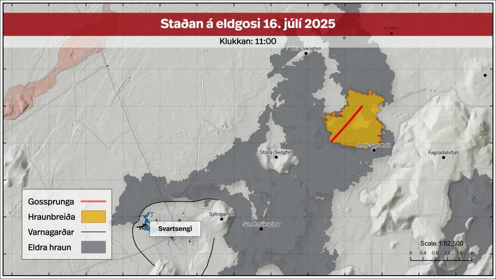 The lava flow is only 10-15% of what we saw yesterday. It’s probably going to die today or tomorrow. https://www.mbl.is/frettir/innlent/2025/07/17/allt_bendi_til_thess_ad_gosid_se_i_renun/