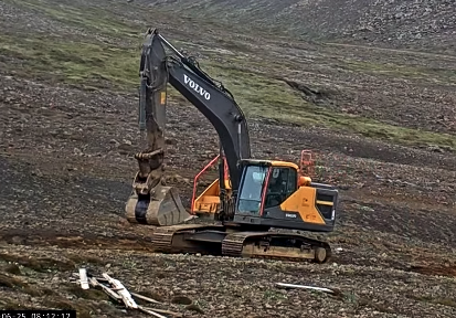 There is a digger driving up to Natthagi, visible from 7:53 on the Geldingadalir camera