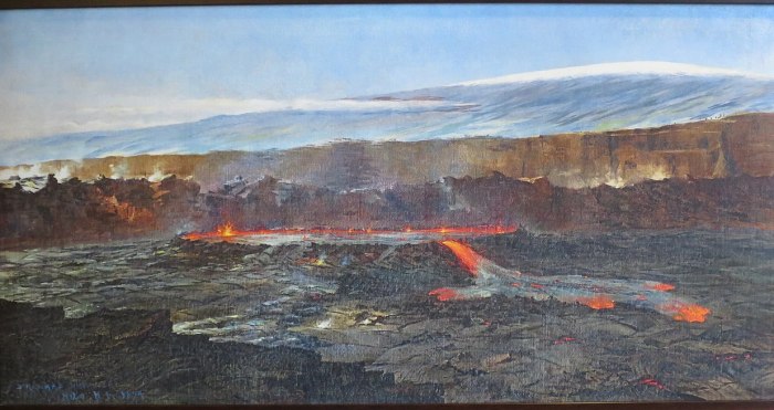 Halema’uma’u lava lake in Kilauea Caldera in 1894. It would have looked similar in 1919. 1894, Howard Hitchcock.