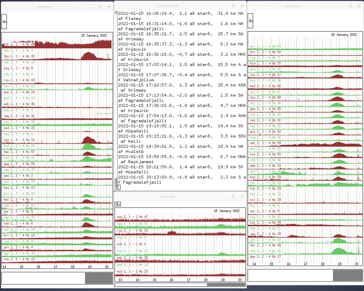 Looks like the full duration of the eruption is about 4 hours and a half. Most of the volume was however produced during two ~30 minute long pulses during the early part of the eruption. The intensity of the eruption waxed and waned 4 times, the two first pulses being much more stronger than the remaining two..