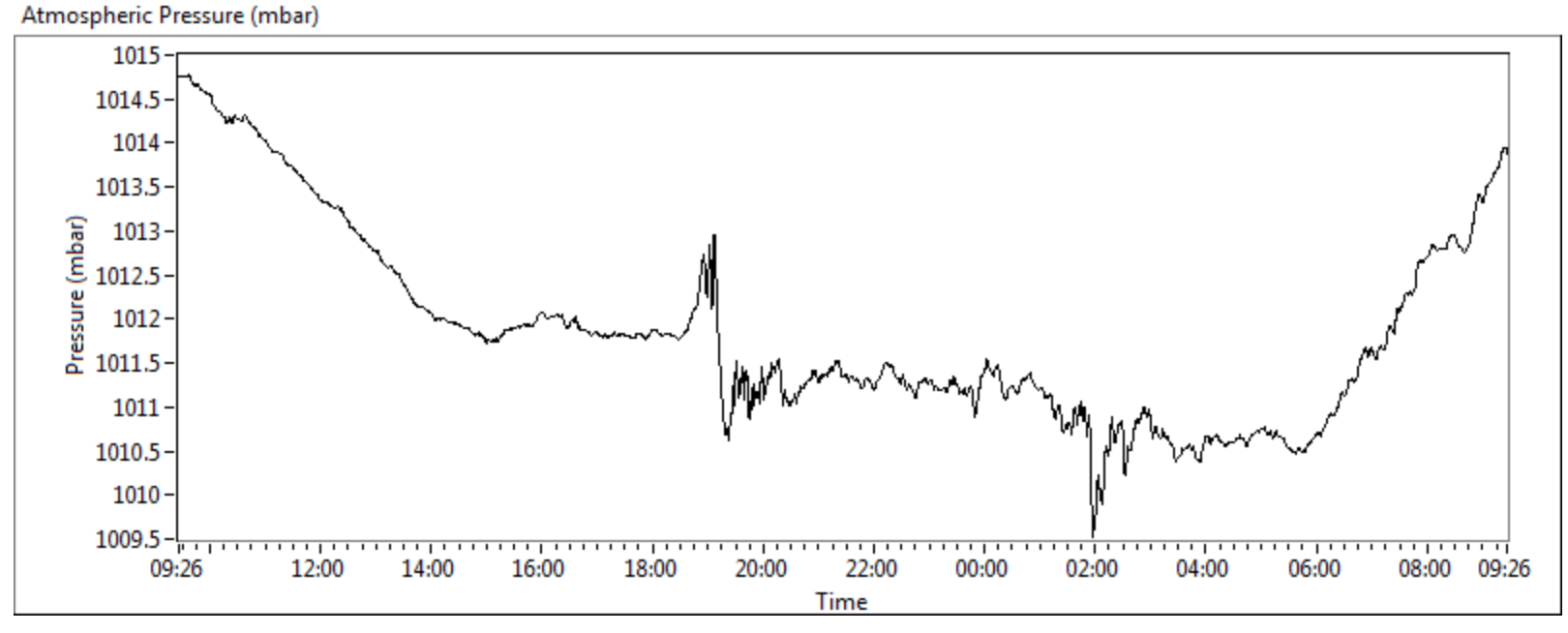 Also quite obvious in our local stations barometric pressure date here in Chios, Greece apx. half an hour ago.
