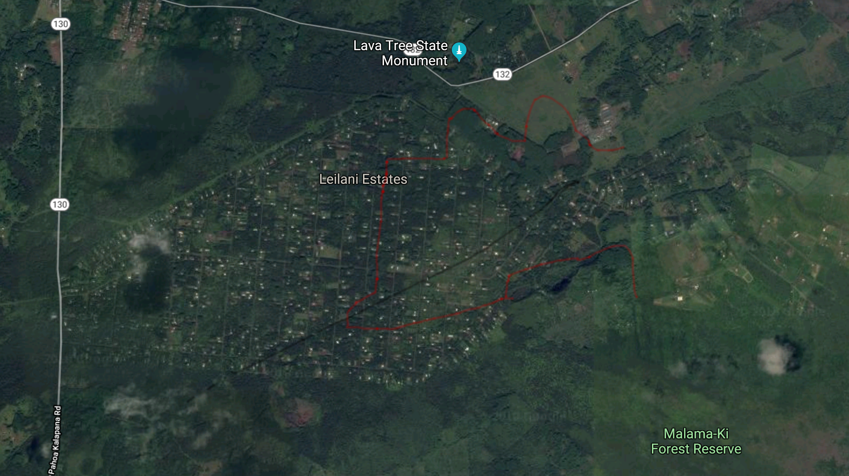 But there is certainly a risk that fissures to the west, perhaps as far as highway 130, will begin to activate. If the activity moves west (uprift), than much of the western side of Leilani may also come under threat.