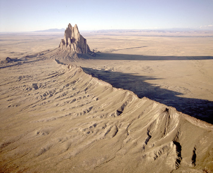 There is in fact a volcanic legacy across New Mexico. Some distance west and southwest of Socorro is a large volcanic plateau stretching from Datil (a very small town halfway to Arizona) to Las Cruces (a rather larger city on the Rio Grande), dated to 25 to 40 million years ago (the plateau, not the city). It includes some 20 large calderas, much eroded after the passage of so much time. At the time, much of the southwest US was in volcanic turmoil with many ignimbrite eruptions. In the north of New Mexico is a line of volcanic features including craters, calderas and cones, stretching across the state. This activity is less than 5 million years old. This includes the Taos volcanic field, the largest one in the Rio Grande rift with lava and cinder cones, and the Valles Caldera, a 20-km wide, 1 million year old caldera. At the southwest end of this line of activity lies the Zuni-Bandera lava flow, which includes the 40-km long McCartys flow, active only 3000 years ago. The dry climate has limited erosion: the lava seems even younger than it is. But erosion is not non-existent: elsewhere, in the northwest New Mexico, an ancient volcanic feeder pipe and dike is now sitting on the surface as famous Shiprock.