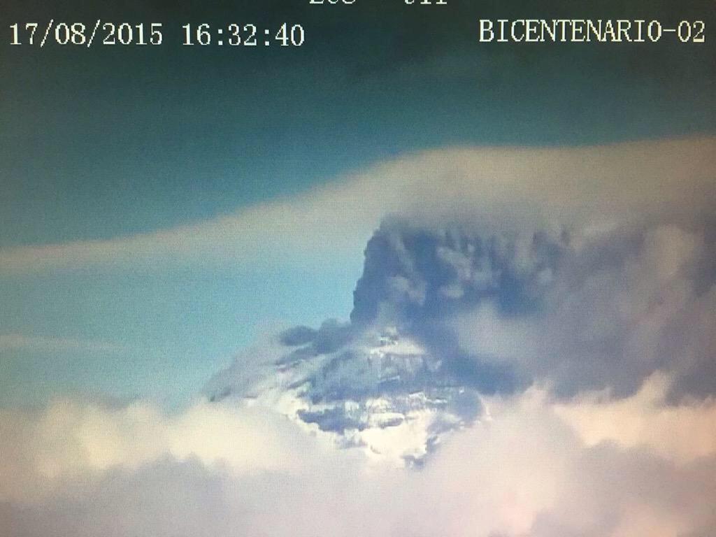 Cotopaxi is throwing up a pretty big plume almost off the screen.