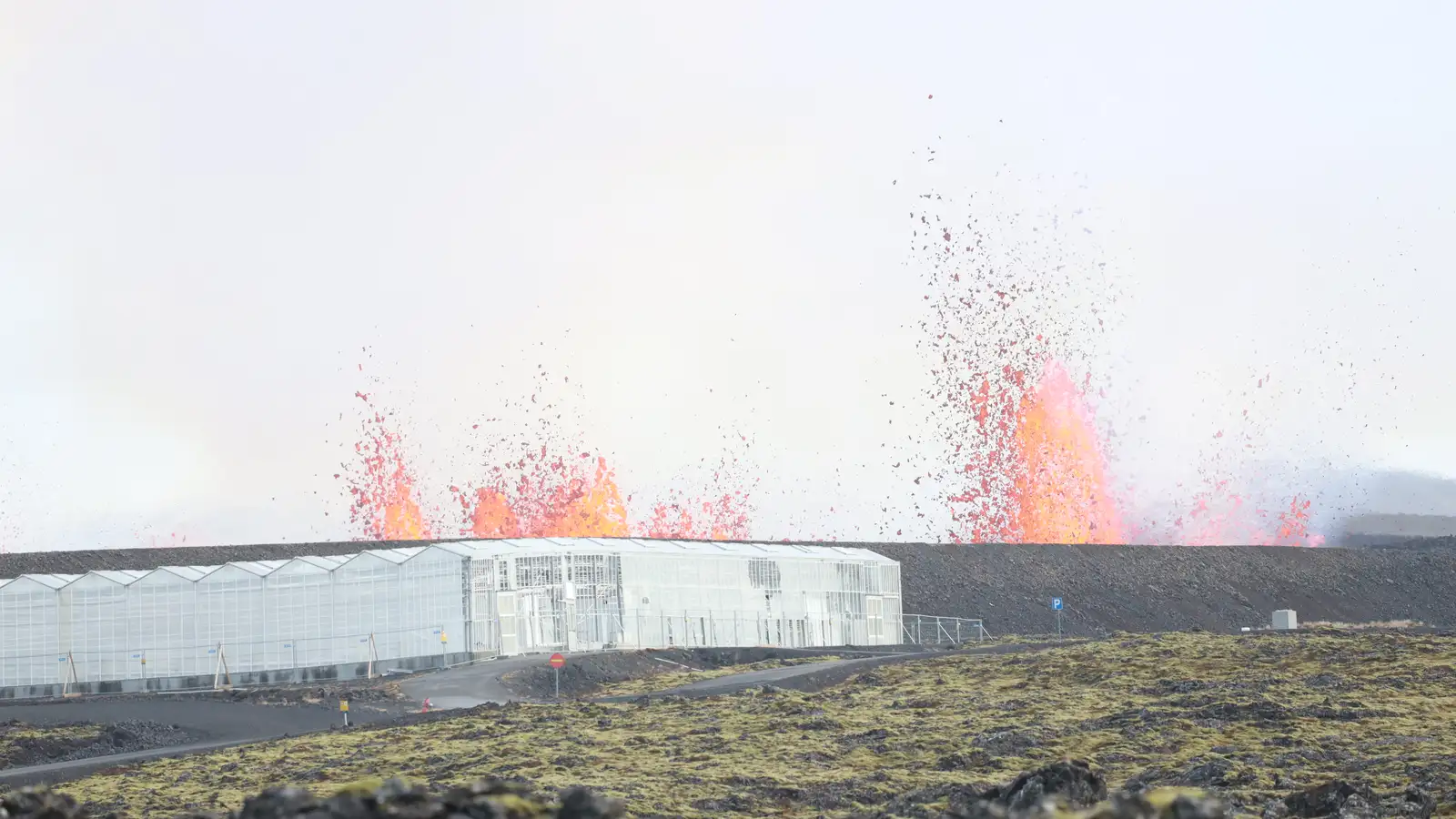 Very close to the greenhouse, and the fissure crosses the berm. https://www.youtube.com/live/Bqudj0x0POA?si=0ys9XBPNBE2VC0Ld