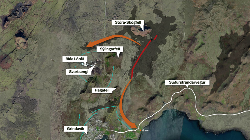What is the west flow doing? We’ve seen a lot of discussion about the Southern Coast lava flow, but there is a second western lava flow that cuts off the Blue Lagoon from Keflavik roads.