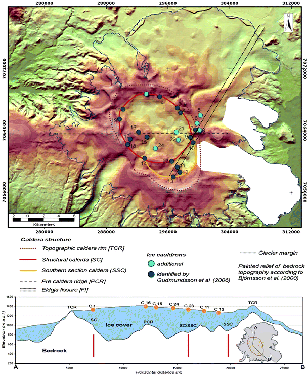 I guess the wider caldera is old and inactive, the inner one must be from Eldgja or at least its current depth is, I cant see the more recent eruptions doing much to fill it in, the total volume isnt huge and floods would wash it away anyway.