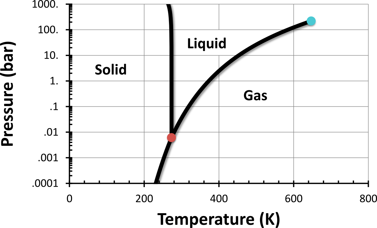 water-phase-diagram Published 31/08/2016 at 1198 × 724 in New Horizons: News from Pluto ← Previous Next → Phase diagram for pure water. The vertical line is the temperature at which liquid water freezes, 0C. Source: https://physicssoup.wordpress.com/2012/09/