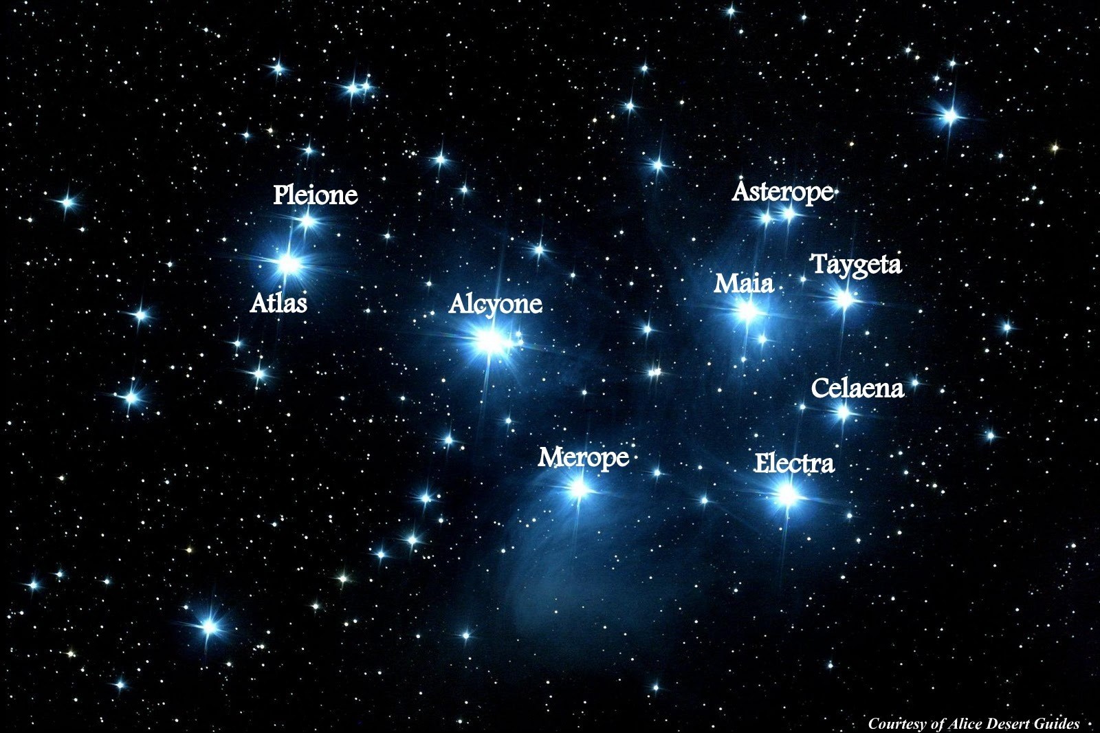 The Pleiades, also known as the seven sisters (although the cluster has many more stars than seven).