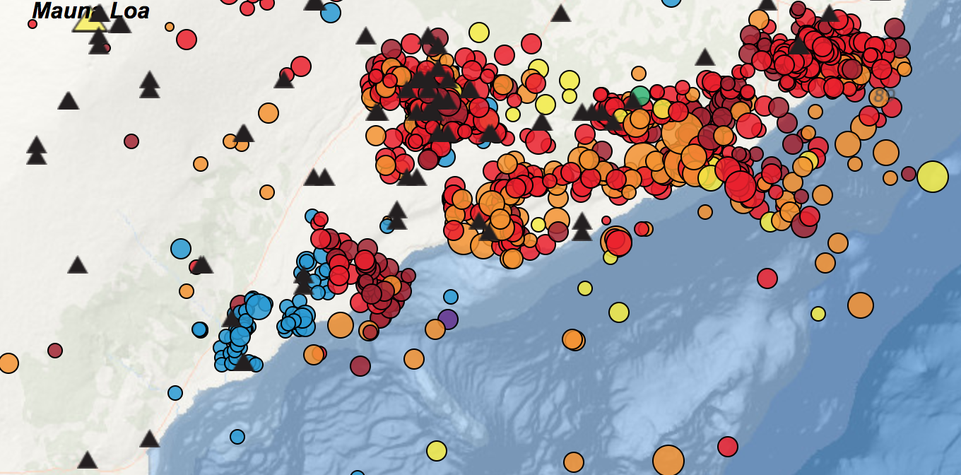 I think there was a dike intrusion to the east which is acting like a piston, slowly pressurizing/pushing everything to the west along the Hilina fault. But if there is an actual flank collapse, it will come at Hilina’s intersection (or to the N or S of that intersection) with Mauna Loa’s old crumblier lava, along Mauna Loa’s western flank.