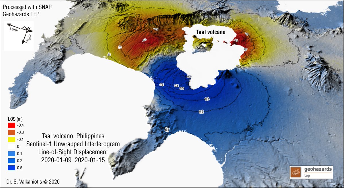 I’d say there’s a rather large area affected by ash/tephra on the interferogram, roughly the whole area that suffered ashfall. That makes a more precise reading for the danger zone harder? Also because Phivolc’s measuring equipment is mainly in that area. How is such equipment affected by ash fall?