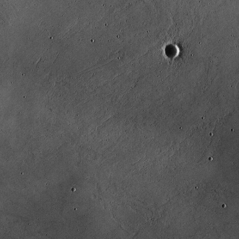 Detail of a near-featureless part of Arsia Mons caldera, HSRC/NASA. Click on image for full resolution