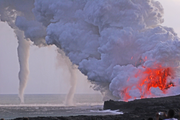 A combination of a volcano and a tornado must but the ultimate scare, one step above even sharknado. What are the chances of that happening?