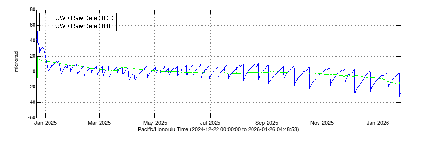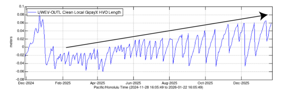 Inflation did a blitz recovery, HVO expects the next episode “is likely to occur between January 21 and 25”. It is unpredictable how the earthquake swarms will influence the next episode: “The swarms are related to migrating magmatic pressure within the summit region but their impact on the next episode of fountaining, if any, is unknown at this time.” The 3 months graph of UWD shows the steep inflation: