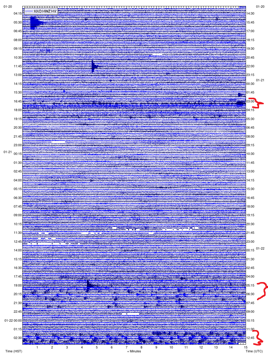 Interesting that there’s “little” discernible GPS movement at HUSM. At ~5km east of the ongoing swarm, I would think there would be some sign of movement on the surface other than a “possible” westward and/or downward shift of a couple of mm since the swarm started…which can explained best by an expanding bubble of some kind to it’s west? So far, it’s only one data point and well within the normal noise, so we’ll need to further monitor the progression/cessation? of further activity to get a better sense of what’s going on. Personally, I’m rooting for a tectonic explanation since it might be the precursor to a new breakout sometime down the line?
