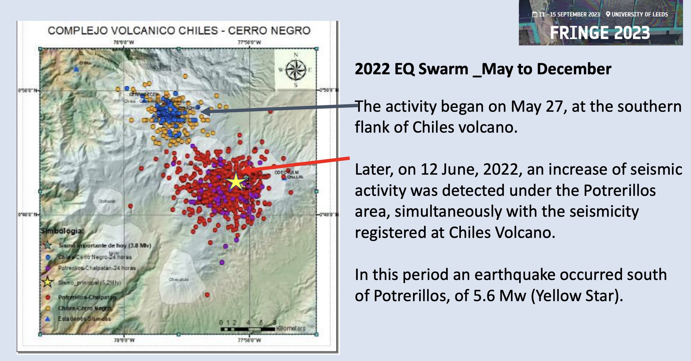 The images above are from Patricia Mothes et al., Variable Ground Deformation Rates Since May 2022 at Chiles-Potrerillos Volcanoes, Ecuadorian-Colombia Border, presentation given in 2023. https://fringe2023.esa.int/iframe-agenda/files/presentation-488.pdf
