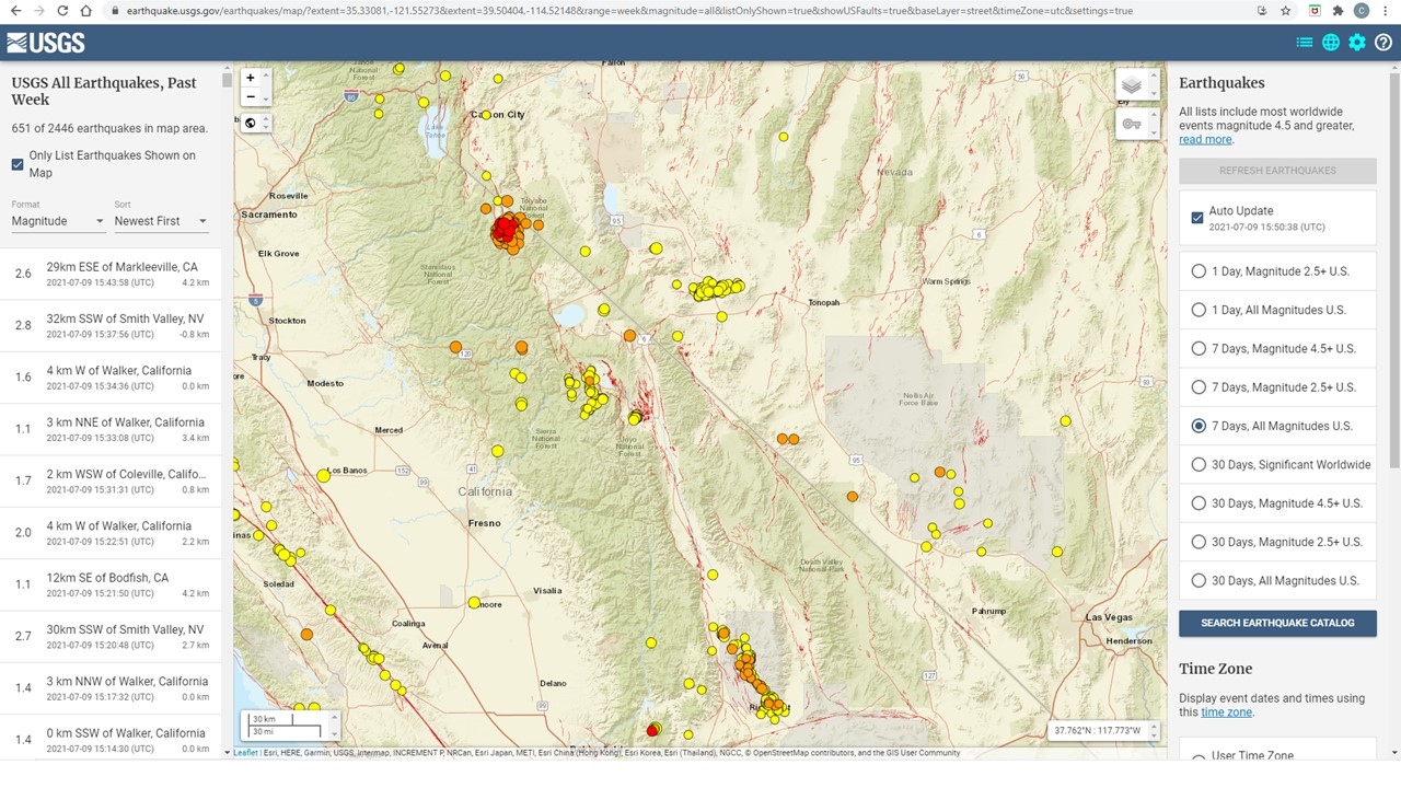 I should have noted in my post above, that there have been several notable shocks directly under Lake Tahoe within the last 2-3 months (as well as some outside Truckee) that do not show up on the above map. Lake Tahoe is only ~ 35 miles away from the Antelope Valley epicenter….and it’s possible that there is some type of linkage between the swarms. When the Lake Tahoe swarm began in April, there was (and continues) to be discussion on whether the recent widespread spike in activity is a possible harbinger of a larger quake…and with the new AL earthquake only 35 miles away, it looks like these prognostications may be bearing fruit.