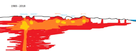 In the interlude above, we used a parameter C, which is the speed at which the coast retreats each year through erosion. But this is clearly not particularly constant. At Surtsey, the speed varies along the coast line, and it also changed with time, between 100 meters per year and 20 centimeters per year. Clearly, the assumption that C was ‘a constant’ is a little too simplistic!