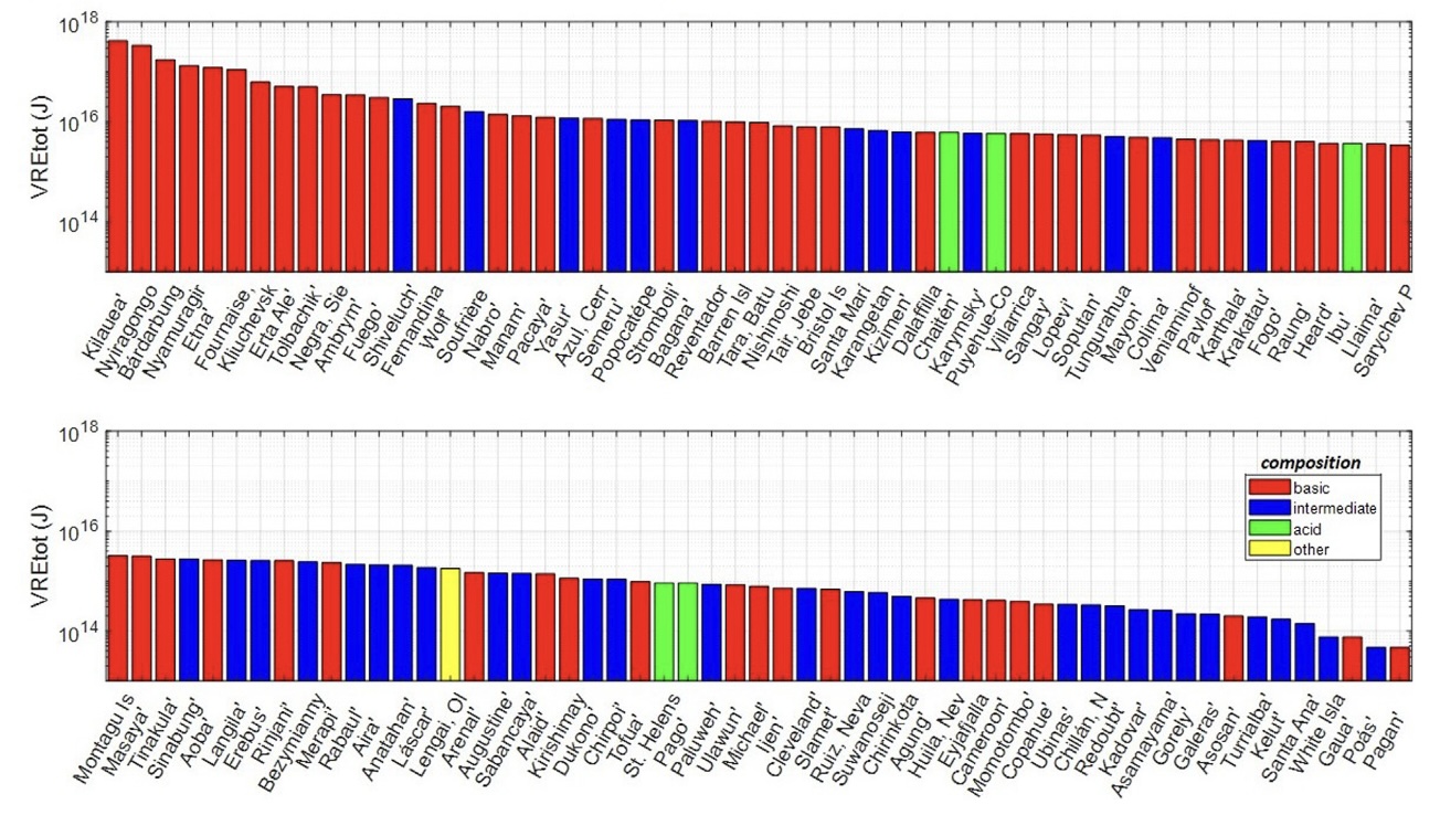 An eruption of Tambora’s size may happen perhaps once every 500 years. Over that kind of period, the top volcanoes in the list would generate a few times less energy than Tambora. So the ranking of that time would still have the big VEI-7 at the top. But Tambora may take tens of thousands of years to be ready for another event like this. Over such a long time, the numbers are very different. 20 or 30 of the listed volcanoes could outperform Tambora over that time.