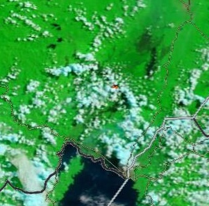 The MODIS and VIIRS data are used in a system called ‘FIRMS’, which aims at detecting fires anywhere in the world. It can be accessed at https://wvs.earthdata.nasa.gov: just set the country name and resolution and off you go. Below is an example for Rwanda, where the cut-out shows two small hot spots, corresponding to Nyiragongo and Nyamuragiri in the Virunga mountains (neither are in Rwanda, but countries don’t fit well into square boxes). There are 6 peaks taller than these two in the Virunga mountains, but none of the others currently show this heat signature. Their fires are extinct. Note that this system by default shows data from today: buttons on the preview can be used to show recent days.