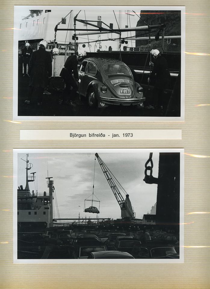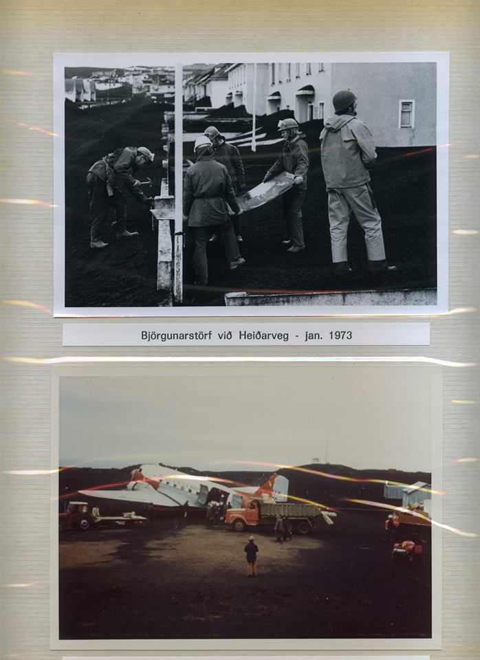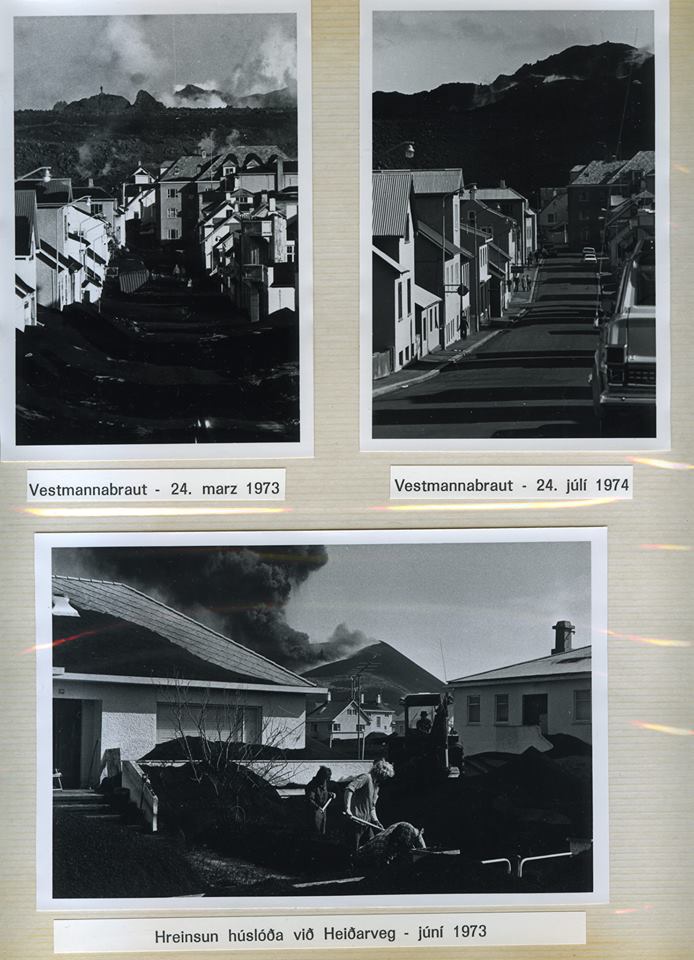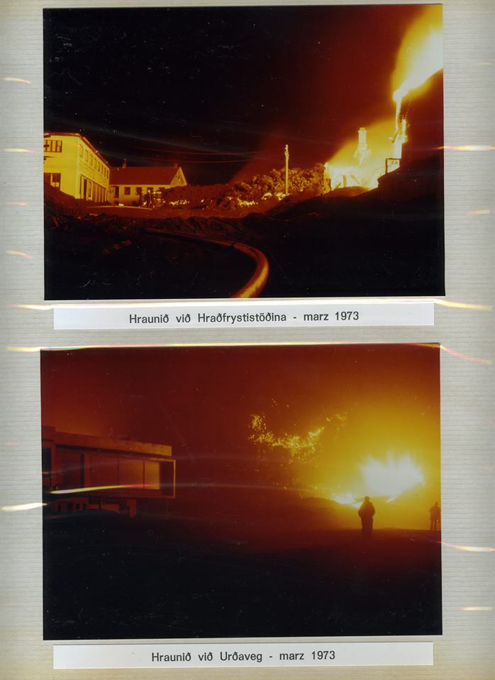The epic photograph above was taken by Guðmundur Sigfússon and clearly shows how close to the town the eruption happened. The following photos are from the private album of Bragi Björnsson. The images were scanned by his son Dagur Bragason and were first published at VC in 2014 with Dagurs permission. They tell the story of the evacuation, and the later struggle to save a town from a volcano. These are photos from the front line of the war against the world.