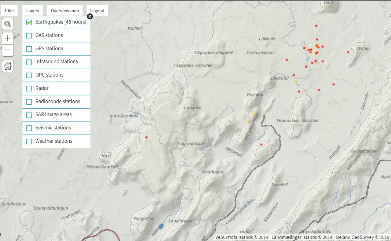 Has very detailed mapping you can zoom in and out of, best Icelandic maps I’ve seen online. You can also overlay quakes within last 48 hrs, which looks like this: