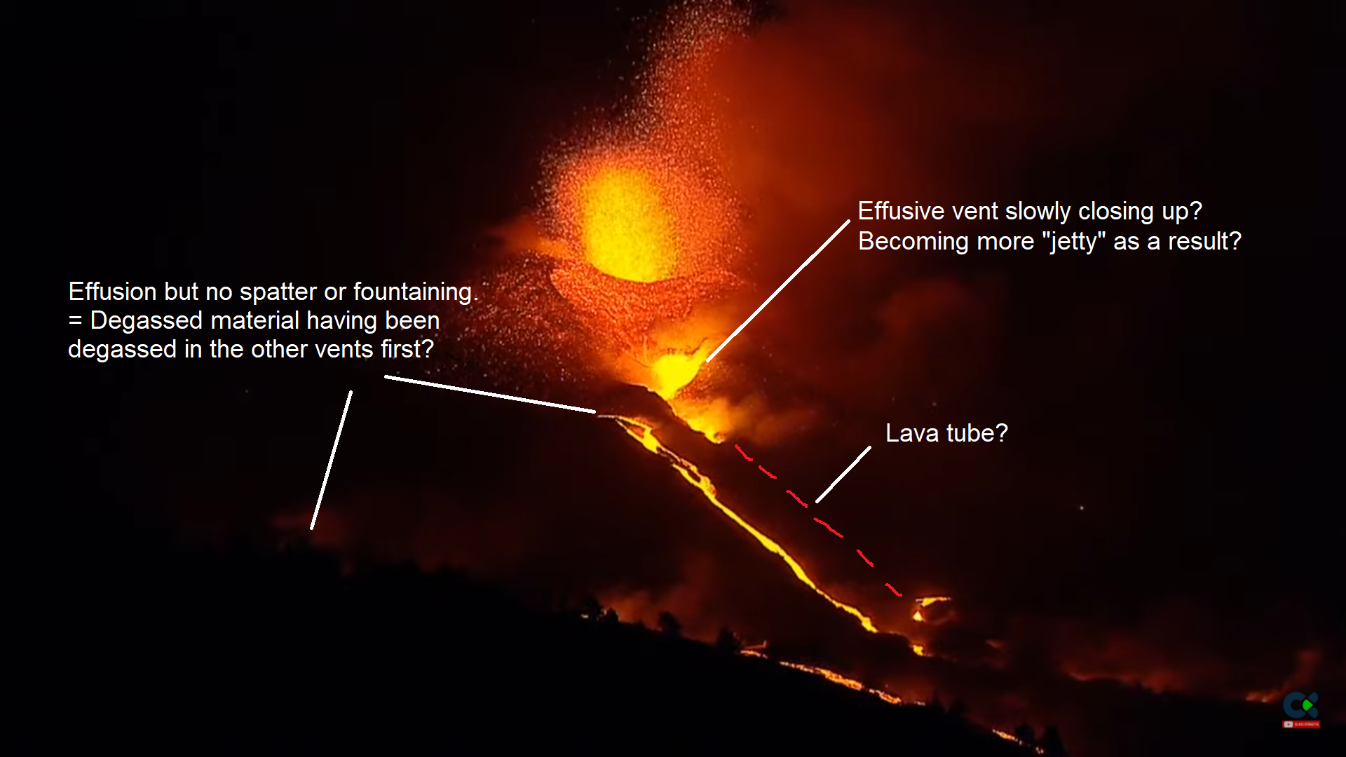 The one I marked as lava tube on the image is on the flow from the effusive vent, though.