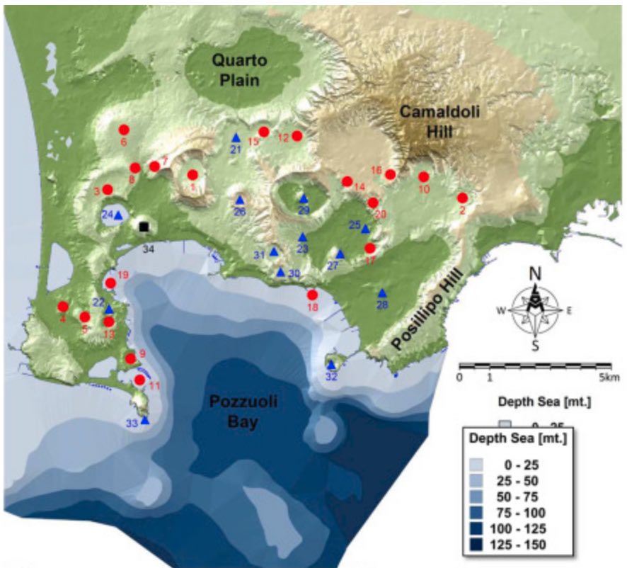 It is a fine spring evening and tonight, Napoli are hosting AS Milan, a contest that will have a great bearing on the eventual destination of the Scudetto. It is also the run-up to the local elections and tonight, the Mayor entertains a very important gathering of political backers. Over at the Osservatorio Vesuviano INGV, the seismologist on duty is much alarmed by the series of earthquakes , apparently centred near Pianura, 10 km from the city centre and close to the margin of both the CI and NYT calderas. He calls the Direttore and by the time she arrives, the instruments indicate that the ground has begun to inflate, possibly as much as 50 cm as the instruments located at Solfatara, more than 4 km away, indicate 12 cm. The direttore immediately calls the Mayor but is told that he is unavailable. It is not until nearly midnight before she gets through to him.