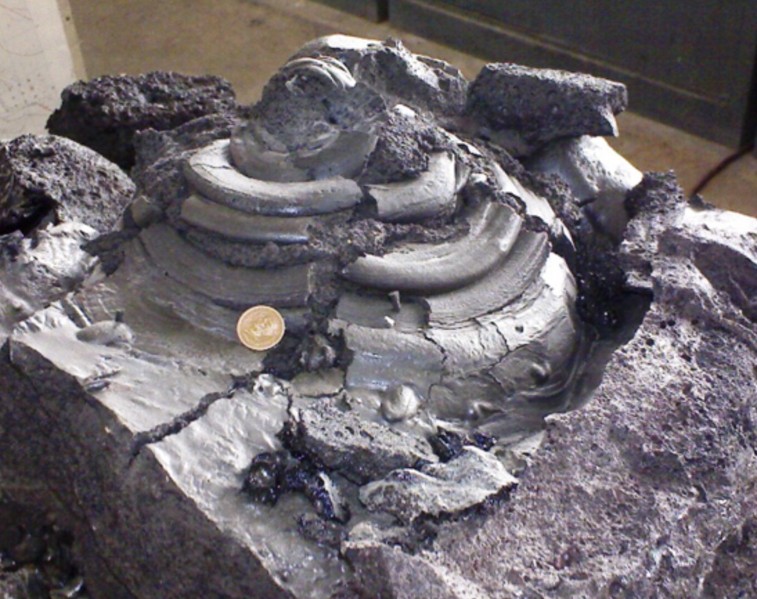So why did the analysis of the rocks point at an origin 60 km underground, rather than the 1 meter where it really formed? The pylons were mounted on outcroppings of the ancient volcanic rocks, on the edge of the Bibai belt. The rocks that were melted were those volcanic rocks (perhaps with some added cement), and the lava that came out was the old solidified pillow lava, remelted by lightning. When the extruded lava was analyzed, it correctly found that it had come from 60 km depth. But that had happened not in 2010, but 70 million years earlier. This lava was originally produced at the bottom of a long vanished ocean; it predated the arrival of India by 20 million years. Even the Deccan traps were still in the future, and dinosaurs were still roaming the earth. The scientists got it spot on – just with a minor deviation on the date.