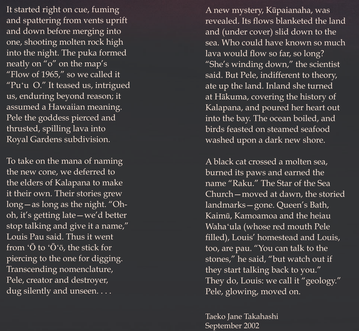 • Maybe Holcomb was right, but this naming was done in conjunction with many people from Puna with strong cultural ties to the area, who made the final decision and also suggested this name too among several others. Maybe if you go back 500 years someone would be mighty pissed off at this decision 🙂 but things are as they are and the situation has evolved.