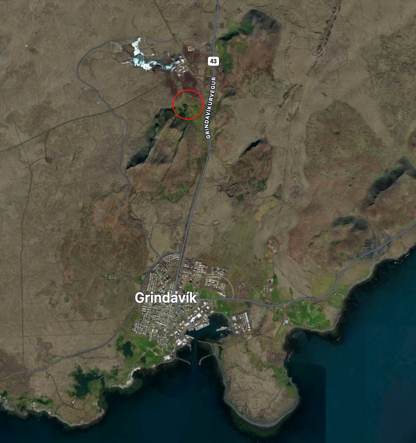 Volcanoes that have a fissure line like Þorbjörn are tricky to say where they will erupt specifically, but a good guess would be 3-5km from the town centre of Grindavik towards the Þorbjörn mountain itself.