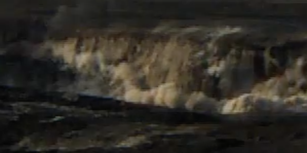 It is very distinct. The wave passes through the steam and momentarily the camera shakes as the back wall collapses. Quite a thing to capture on camera.