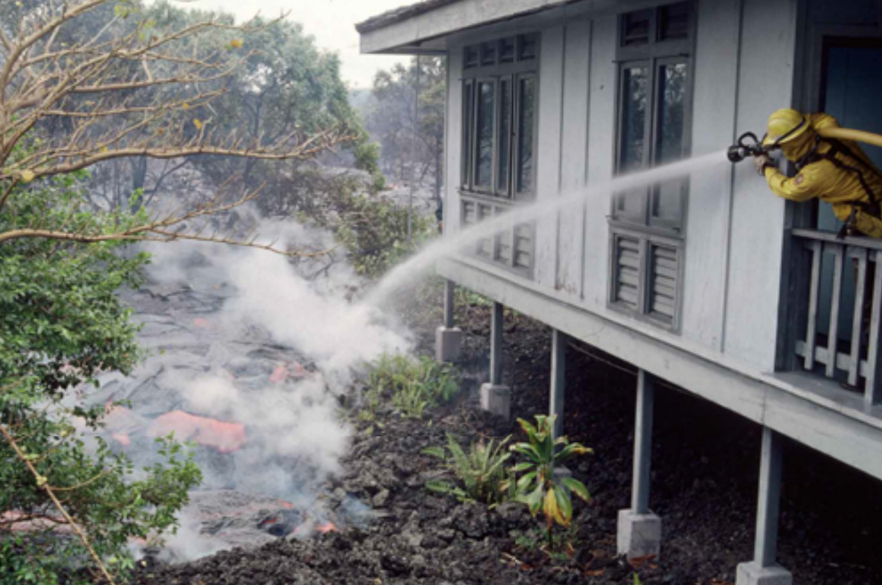 A courageously optimistic but ultimately futile attempt to save to the coastal visitor centre at Kilauea in 1989.